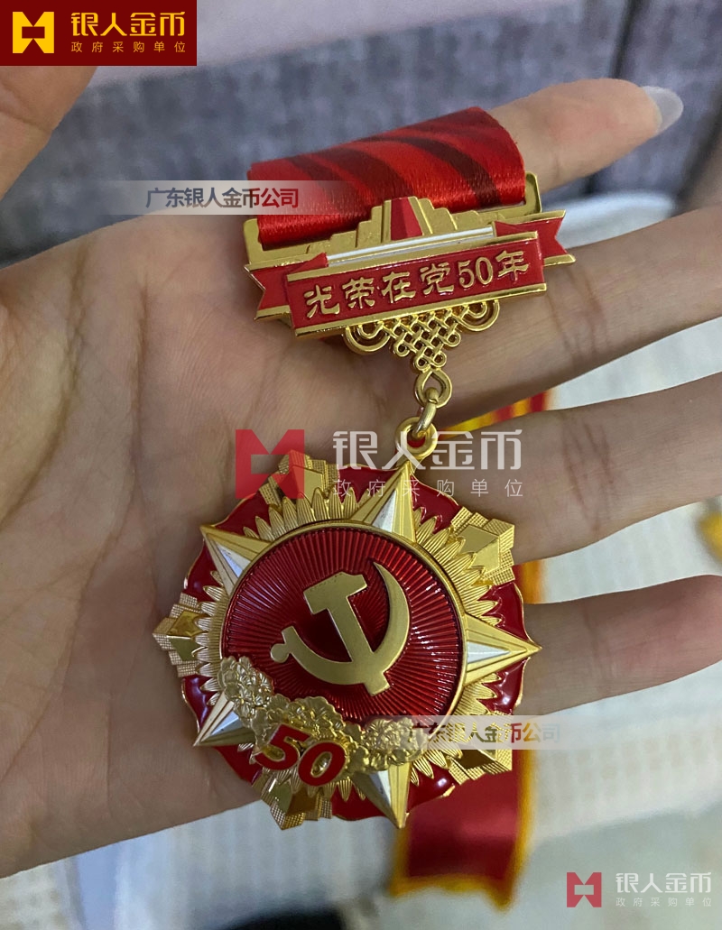 中共廣東省委入黨50年黨齡以上老黨員紀念章_南粵七一紀念勛章定制_優秀共產黨員獎章定做_七一勛章定制制造廠家