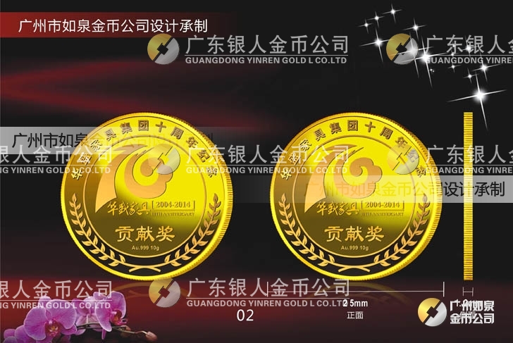 中山華盛公司年會(huì)表彰獎(jiǎng)勵(lì)在崗三年、服務(wù)滿五年、十年優(yōu)秀員工貢獻(xiàn)獎(jiǎng)定做純金金牌、定制純金獎(jiǎng)牌 制作千足金金幣
