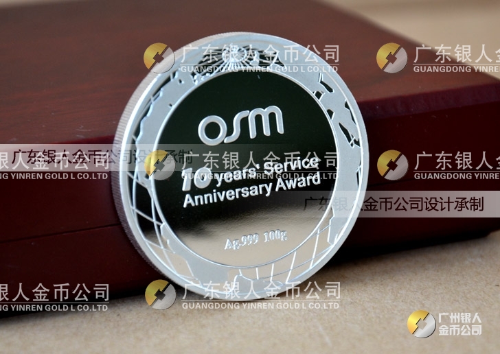 定制瑞典OSM Group-尚科思表彰在崗工作滿十周年服務(wù)獎(jiǎng)純銀紀(jì)念章