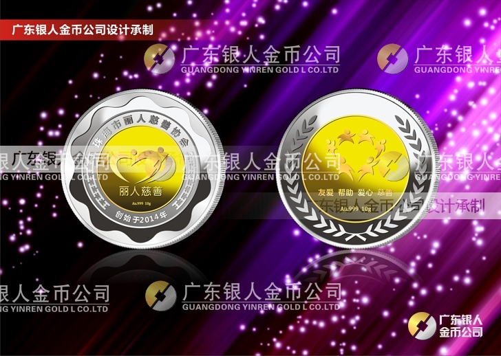 珠海麗人慈善會定制純銀鑲嵌純金幣定制、銀包金紀念幣定制