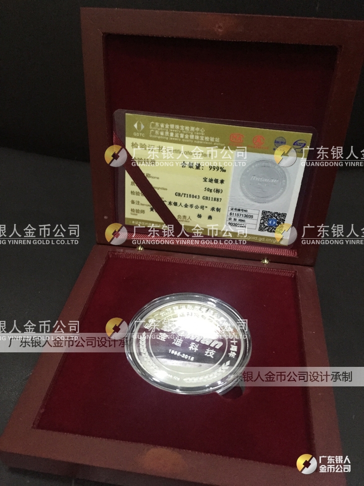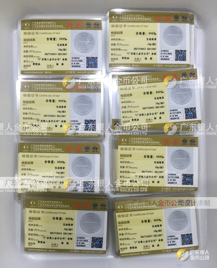 廣東銀人金幣公司承接客戶個(gè)性化定制的金銀幣、金銀章、金銀條、金銀牌、金銀盤均由國(guó)家質(zhì)監(jiān)部門、嚴(yán)格檢測(cè)、權(quán)威鑒定: