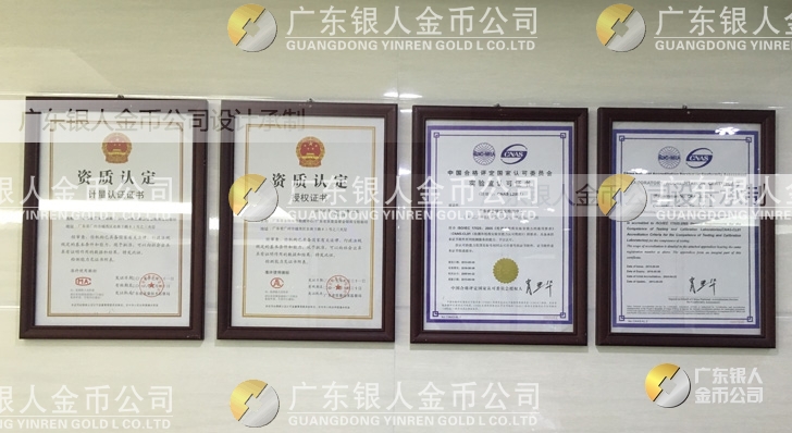 廣東銀人金幣公司承接客戶個性化定制的金銀幣、金銀章、金銀條、金銀牌、金銀盤均由國家質監部門、嚴格檢測、權威鑒定: