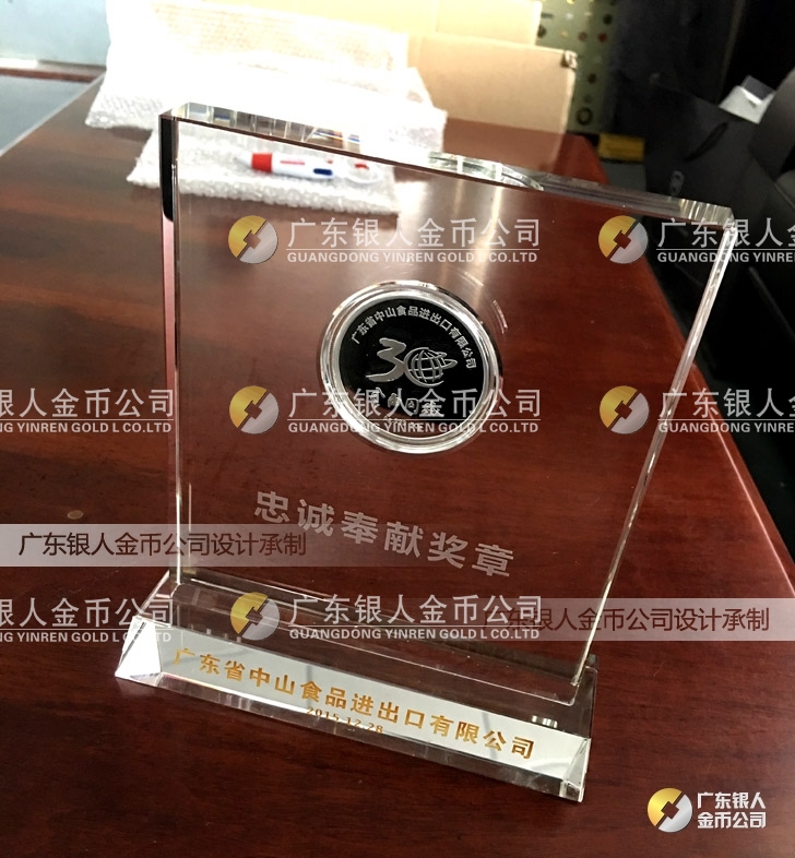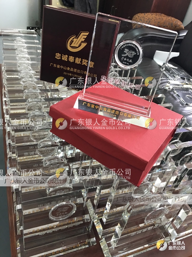 2015年11月制作 中山市食品進出口公司純銀紀念章鑲水晶擺件