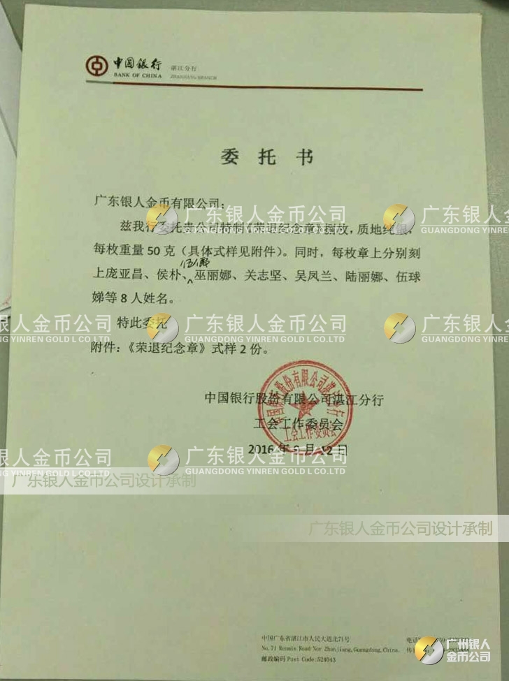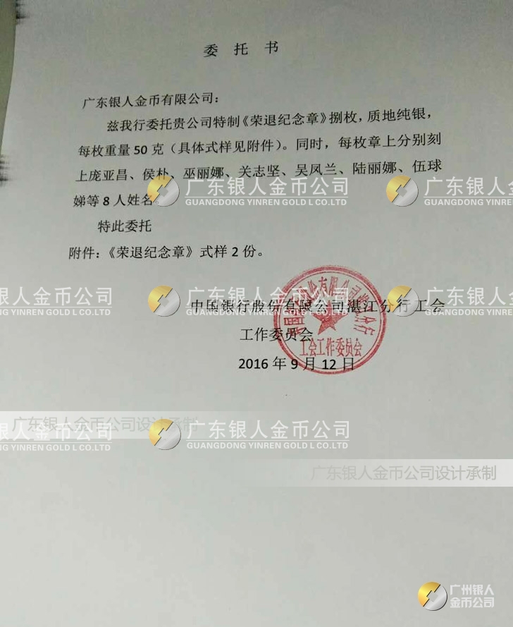 廣東銀人金幣公司,是集紀(jì)念章、獎(jiǎng)?wù)隆渍略O(shè)計(jì)、研發(fā)、定制并服務(wù)于榮譽(yù)稱(chēng)號(hào)全表彰獎(jiǎng)勵(lì)周期管理,致力于證章文化產(chǎn)業(yè)發(fā)展和徽章信息化研究的大型生產(chǎn)制造獨(dú)資企業(yè),是國(guó)家級(jí)紀(jì)念章、獎(jiǎng)?wù)碌脑O(shè)計(jì)者(外包)、制造者(定點(diǎn))和維護(hù)者(認(rèn)可),金銀章綜合解決方案的提供者。在全國(guó)獎(jiǎng)?wù)聞渍骂I(lǐng)域,廣東銀人金幣公司擁有專(zhuān)業(yè)的勛章產(chǎn)業(yè)規(guī)模、齊全的證章門(mén)類(lèi)和完整的紀(jì)念章產(chǎn)業(yè)鏈條。