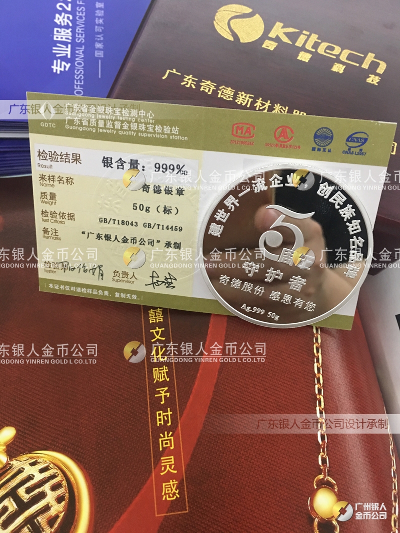 奇德新材料公司作為一家新材料、新能源公司,是國家級高新技術企業,為表彰獎勵5周年老員工定制銀牌。