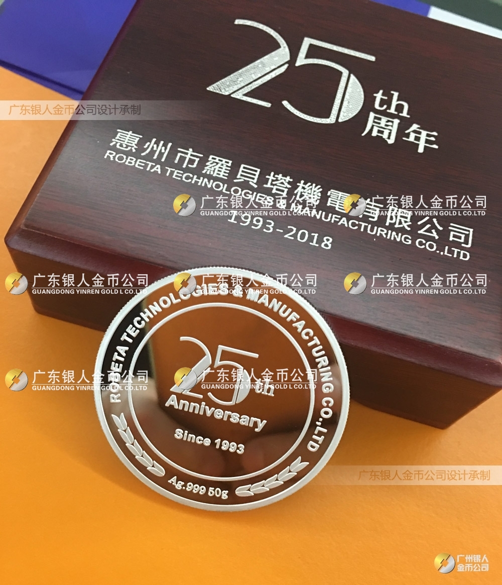 創(chuàng)建于1993年的機(jī)電行業(yè)品牌羅貝塔,為工業(yè)自動化設(shè)備領(lǐng)先企業(yè),特此委托我司定制慶祝公司成立25周年紀(jì)念銀幣。