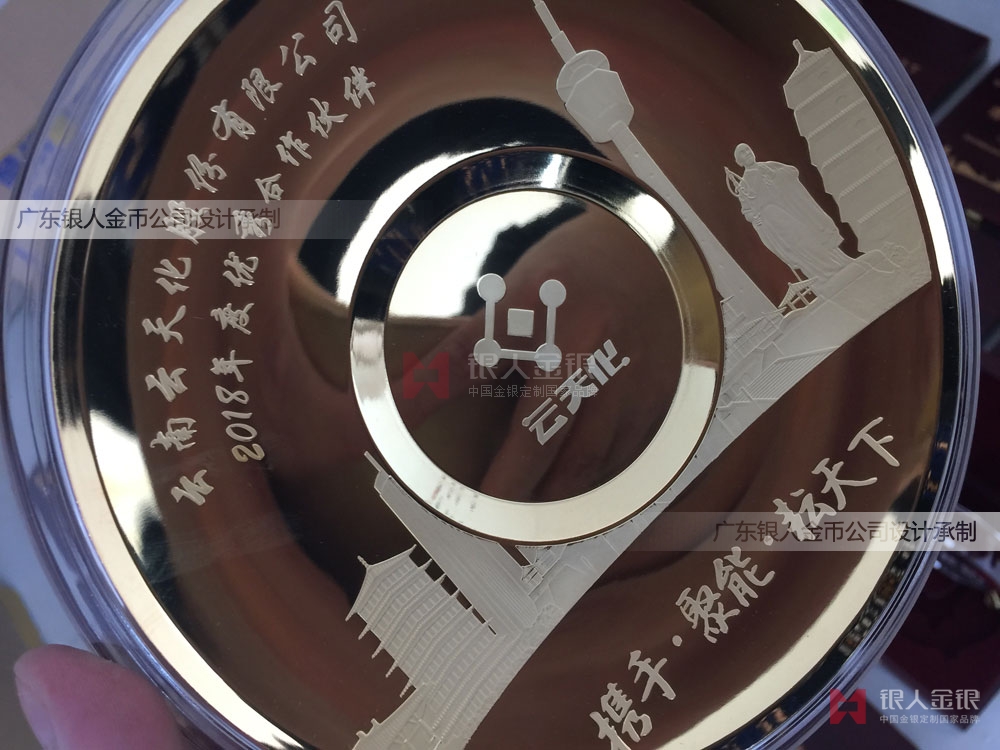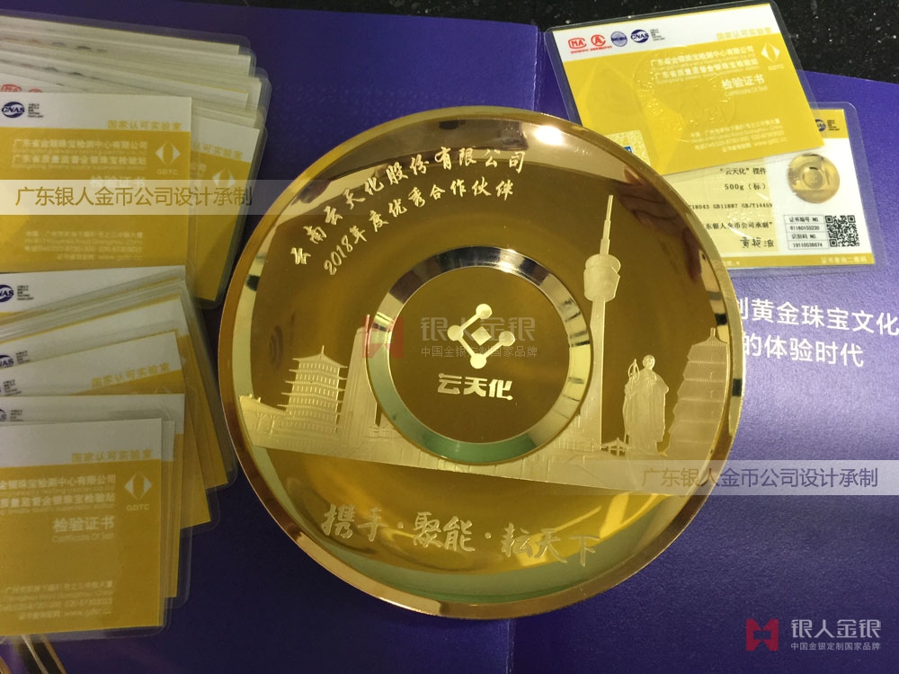 值此紀念改革開放40周年之際,昆明云南云天化股份有限公司為表彰優秀經銷商、頒發授予純金銀紀念盤,以資鼓勵。