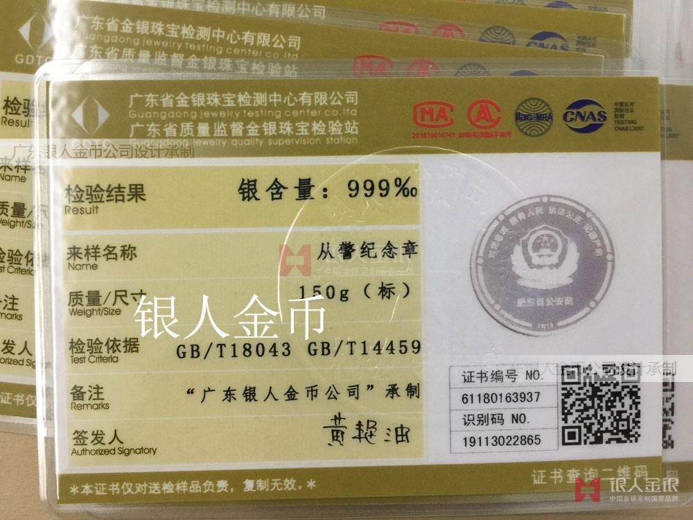【警察從警紀(jì)念章制作】 廣東銀人金幣公司-紀(jì)念章制作廠家