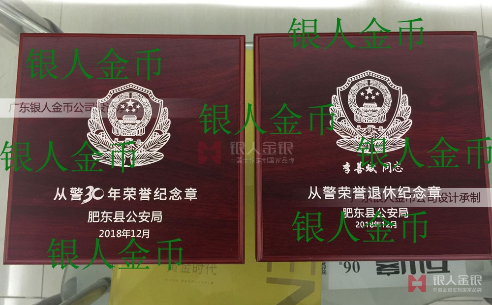 肥東縣公安局從警30年榮譽退休紀(jì)念章定制_金銀紀(jì)念幣定制_從警特定年限紀(jì)念章制作