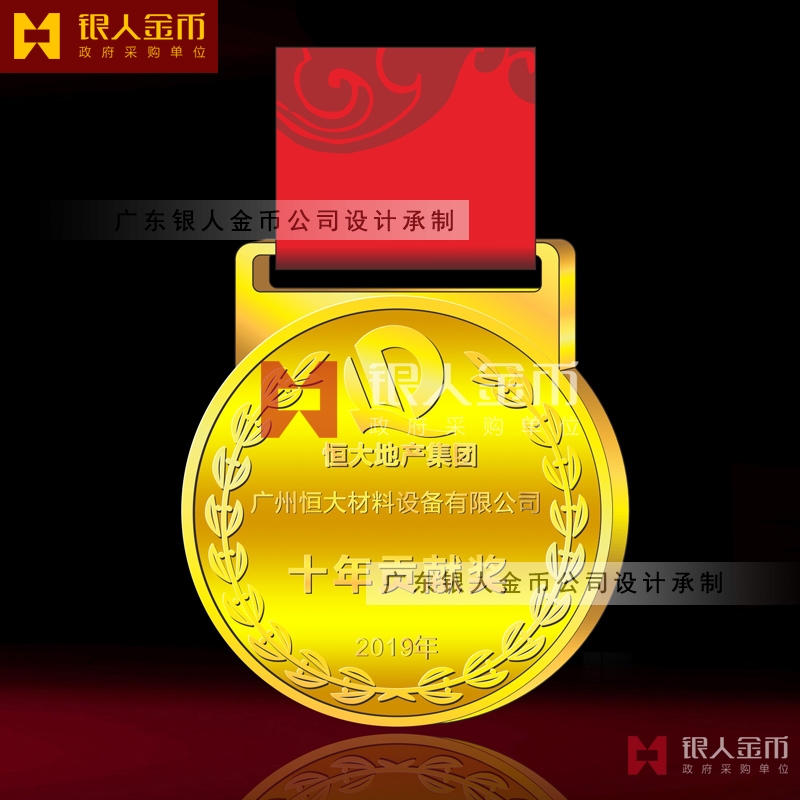 恒大公司優(yōu)秀員工十年勛章足金金牌定制_優(yōu)秀員工純金獎牌定制_突出貢獻(xiàn)獎牌定制_優(yōu)秀員工勛章定制_純金牌定制_足金牌定制