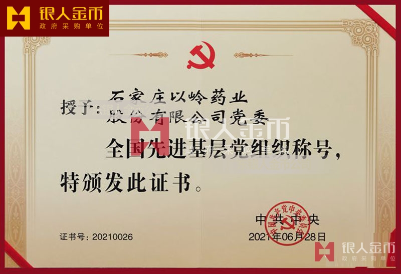 中組部兩優一先獎牌獎章證書全國先進基層黨組織榮譽證書_先進基層黨組織獎勵證書_先進黨組織獲獎證書