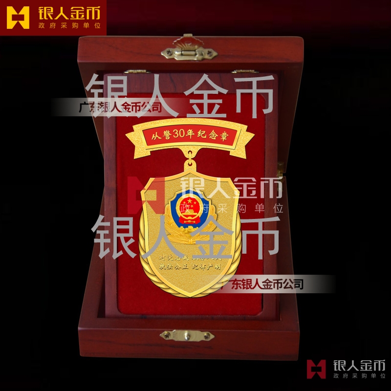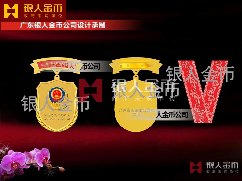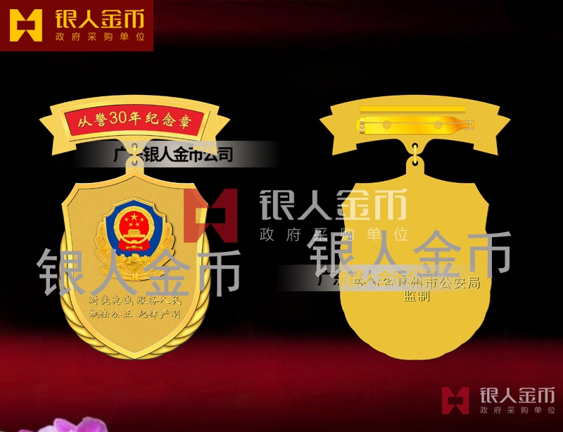 安徽省毫州市公安局銅質鍍銀質鍍金質紀念章民警從警年限紀念章定制_公安金盾獎章獎牌定制盾形盾牌紀念章定制_警察光榮退休紀念章定做訂制制作