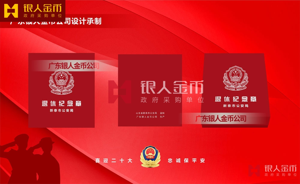 山東省公安廳泰安市公安機關新泰市公安局喜迎二十大-忠誠保平安民警光榮退休紀念章定制_從警勛章定做_警察從警紀念獎章制作_公安干警工作30周年40周年紀念徽章定制_警察光榮離休退休榮休紀念勛章訂制_公安民警警察退休紀念牌定制
