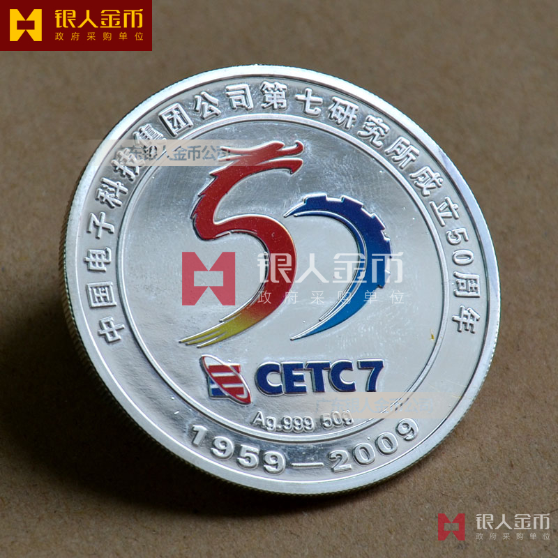 中國(guó)電子科技集團(tuán)公司第七研究所成立五十周年紀(jì)念幣定制_周年紀(jì)念章定制_廣州足銀紀(jì)念章定制_廣州純銀銀章定制_廣州足銀銀章定制_廣州銀幣定制