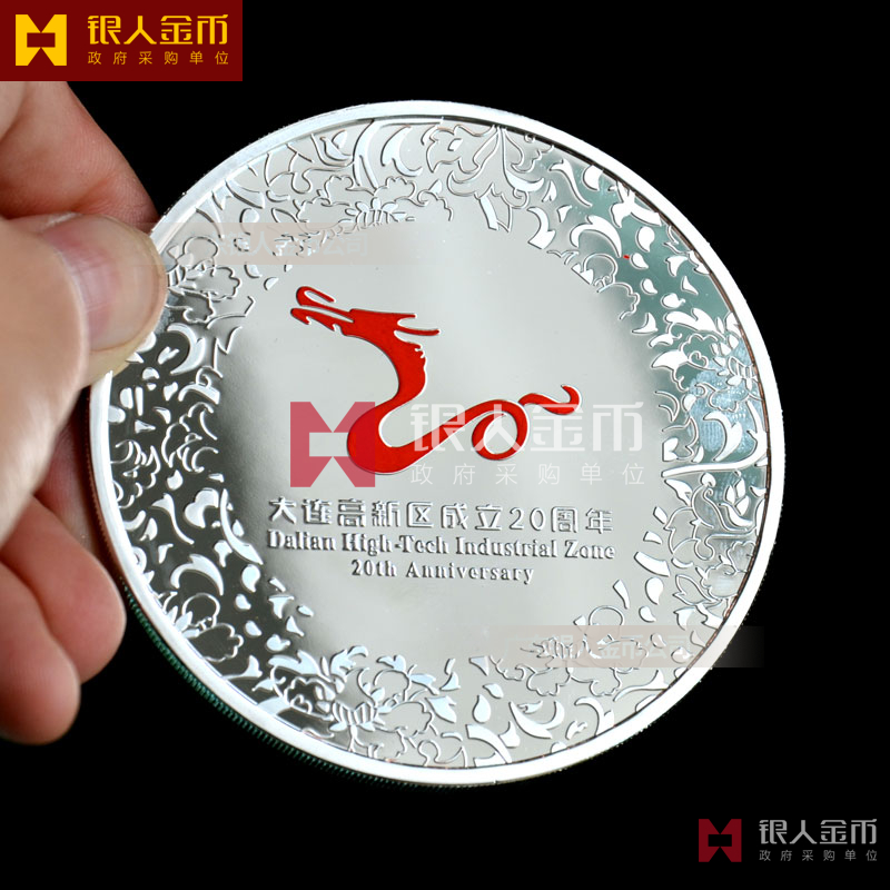 大連高新區成立二十周年金銀紀念幣定制_大連金銀紀念章定制_大連純銀紀念幣定制_大連銀幣制作_大連銀幣定制_大連定做銀幣_大連訂制銀幣