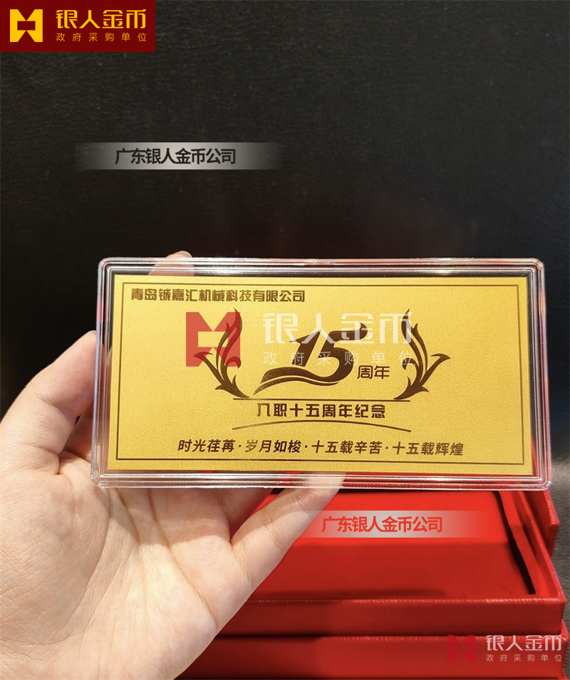 青島鋮嘉匯機械科技公司金鈔金卡定制_員工入職15周年黃金紀念鈔定制_員工工作滿15周年紀念金鈔定制_紀念金卡定制_入職紀念金條定制