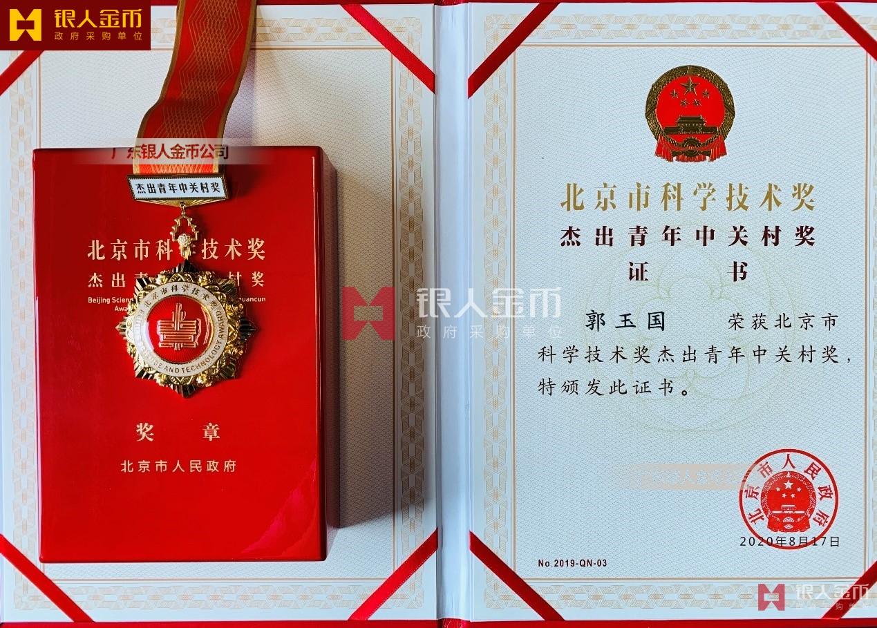 北京市政府北京市科學(xué)技術(shù)獎杰出青年中關(guān)村獎獎?wù)聞渍潞酮勁?、獎狀證書證章紀念獎?wù)录o念徽紀念胸章紀念勛章(圖)--【廣州銀人勛章獎?wù)录o念章制作制造工廠廠家徽章廠有限公司】